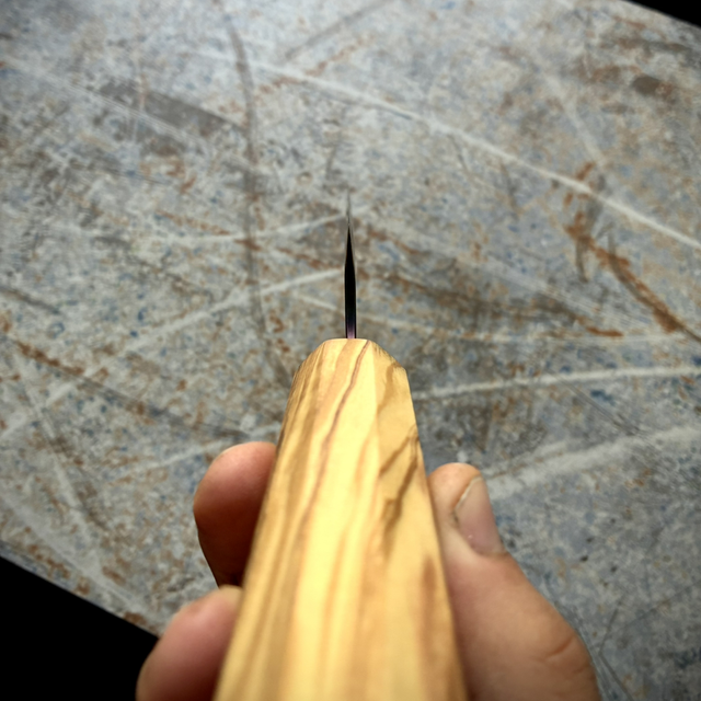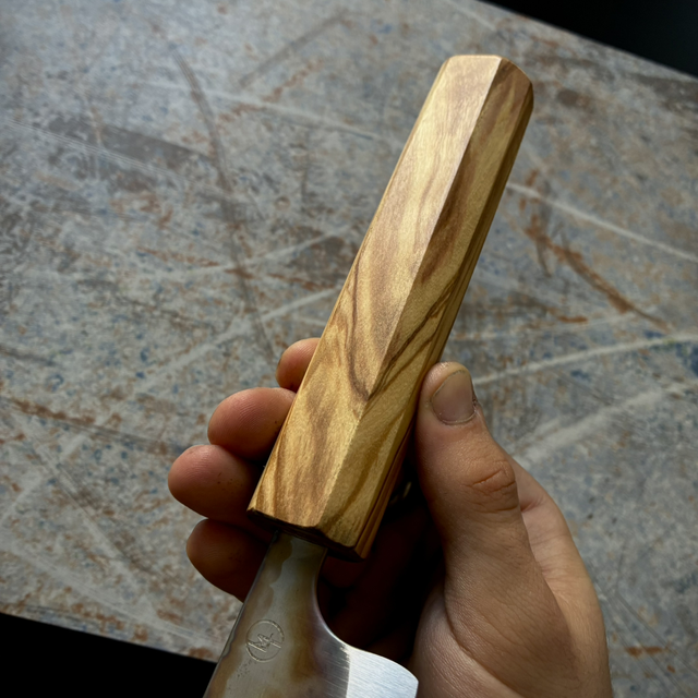Kiritsuke en olivier. Longueur de tranchant 15cm acier 14c28n.