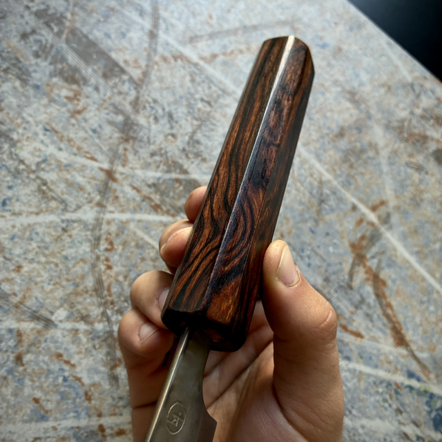 Office universel style gyuto en bois de fer d’Arizona. Tranchant 12cm acier 14c28n.